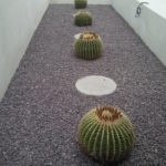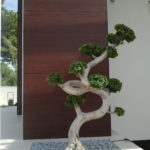 Los elementos naturales de jardín refuerzan la geometría de la composición.
