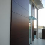 Se construye un bloque monocromático que rompemos con paneles de madera de nogal y cristal mate.