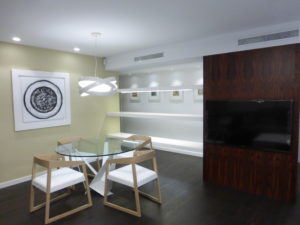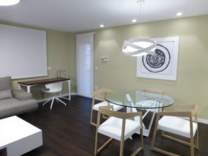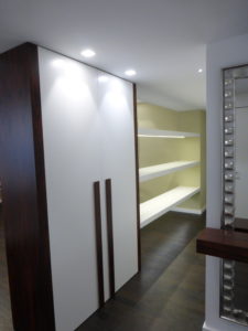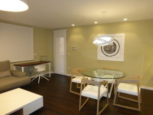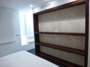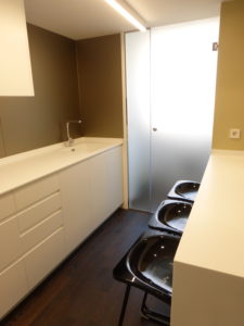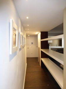 Armario entrada: Separa la entrada de la vivienda y el pasillo del salón sin ofrecer un obstáculo visual. Conseguimos con esto un espacio luminoso y más amplio.